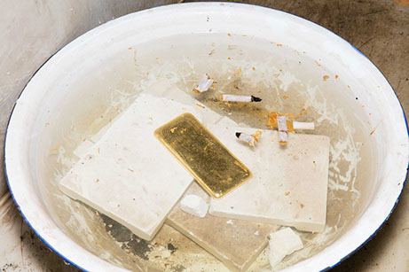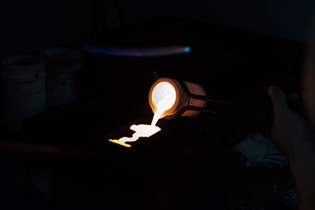 Once dry the gold is placed within a borax protected container and heated with a blowtorch, consequently melting and forging the extracted gold together.